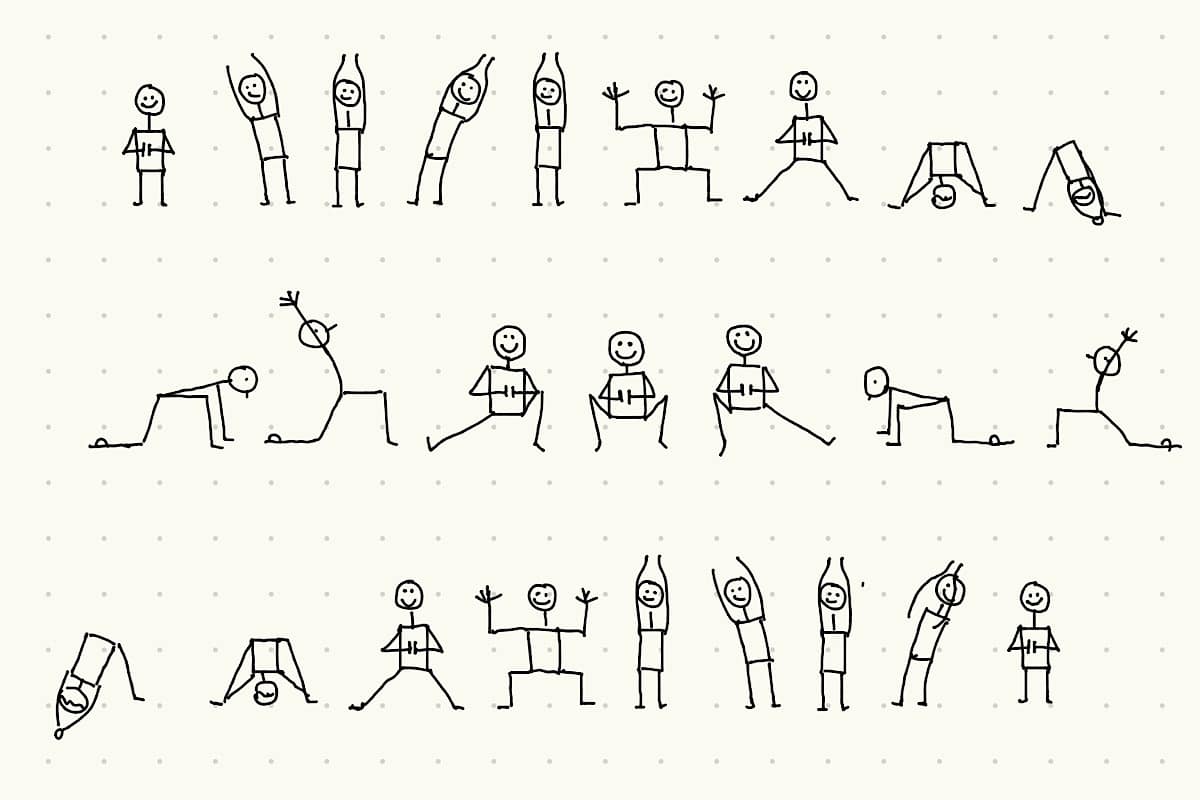 - Bewege dich langsam und fliessend von einer Position zur nächsten